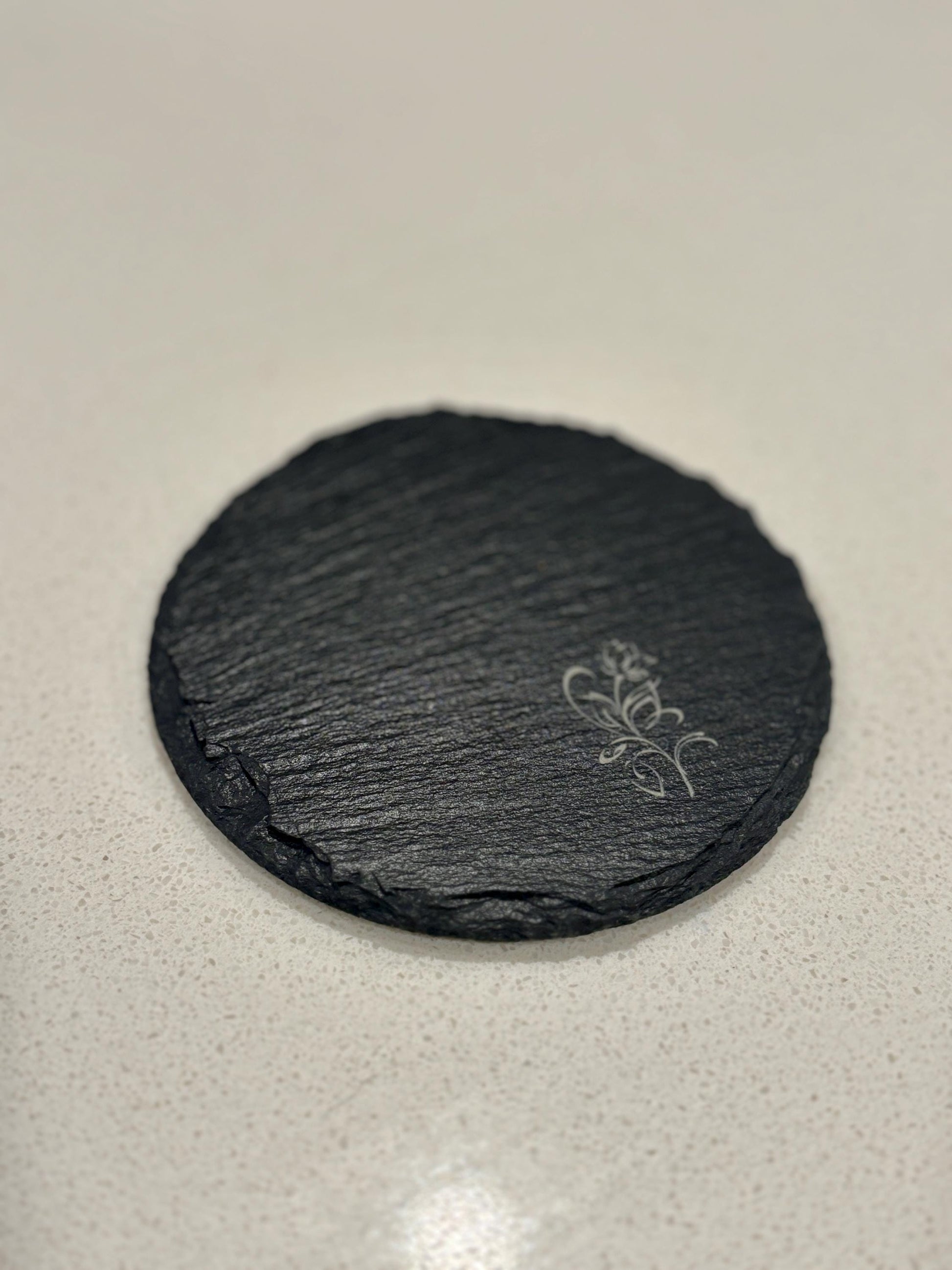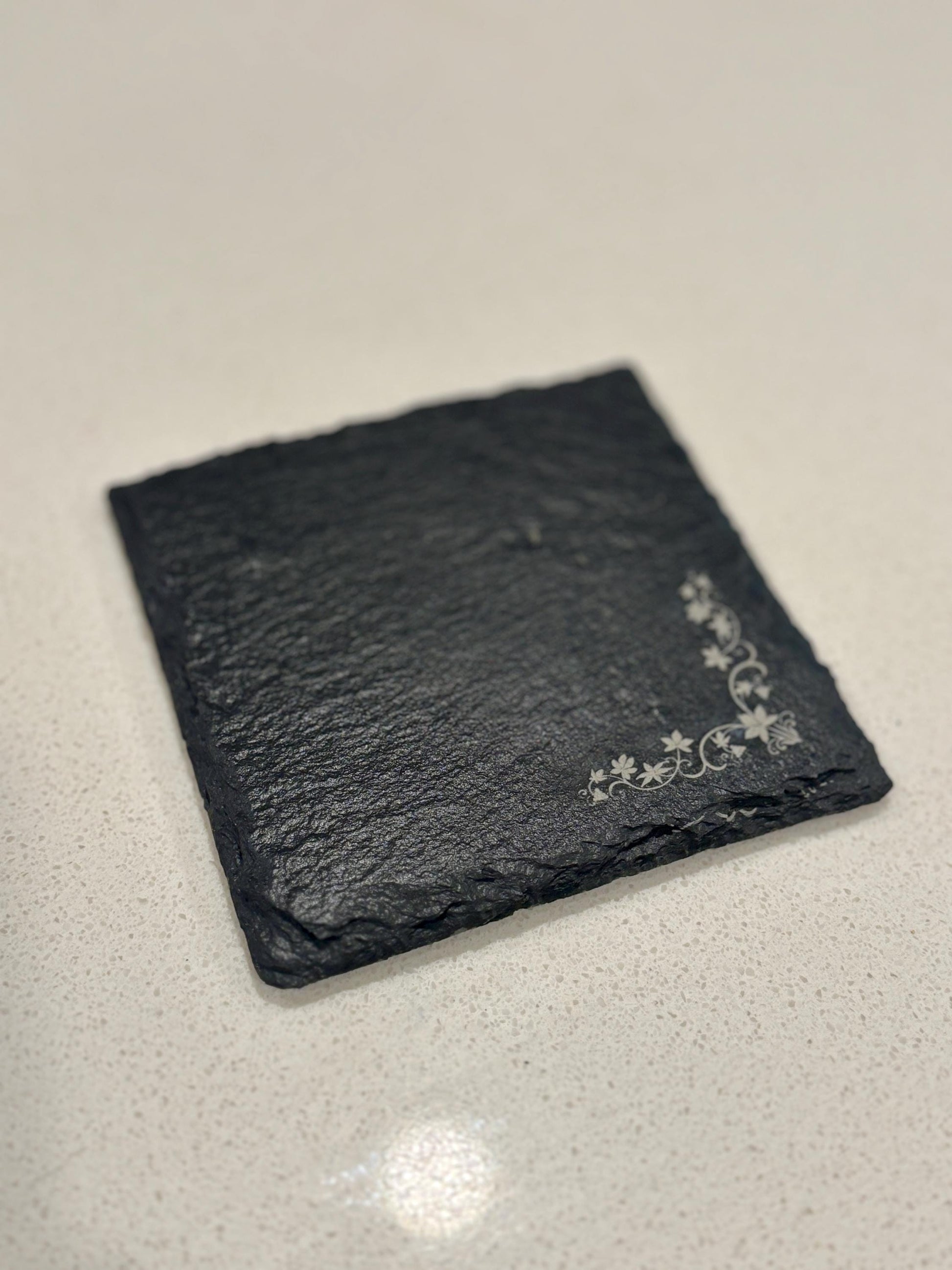 ** Sold as a set of 4** Elevate your bar with our stylish bar-themed slate coasters! These engraved coasters feature unique stock designs, adding a touch of personality to your drink-ware. Crafted from natural slate, each coaster boasts a distinct texture and protects your surfaces from condensation. Choose from a variety of bar-inspired designs to complement your home decor or give a memorable gift to any cocktail lover.