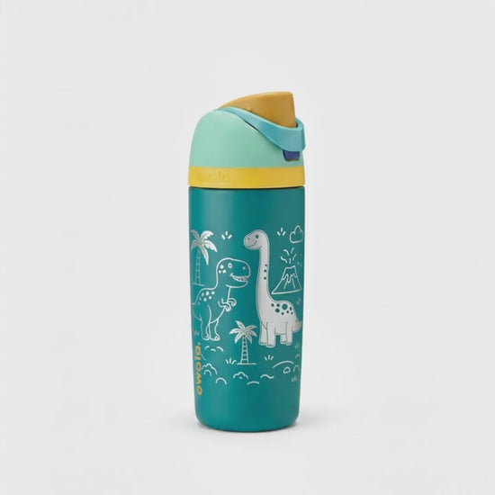 Dual-Drink FreeSip Spout: Patented design allows kids to sip upright through the built-in straw or swig from the wide-mouth opening.