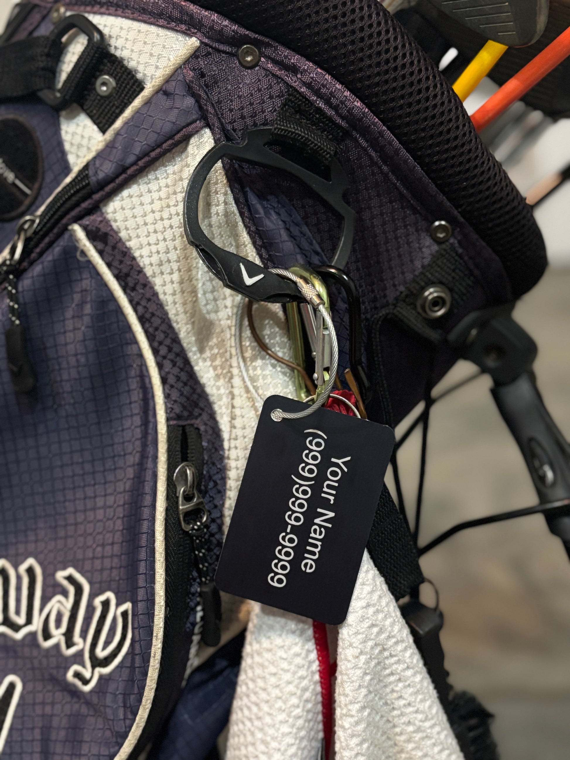 Ensure your golf bag always finds its way back to you with our custom engraved Golf Bag ID Tag. Personalize this durable tag with your contact information and a unique image, providing clear identification and a touch of personal style on the course.
